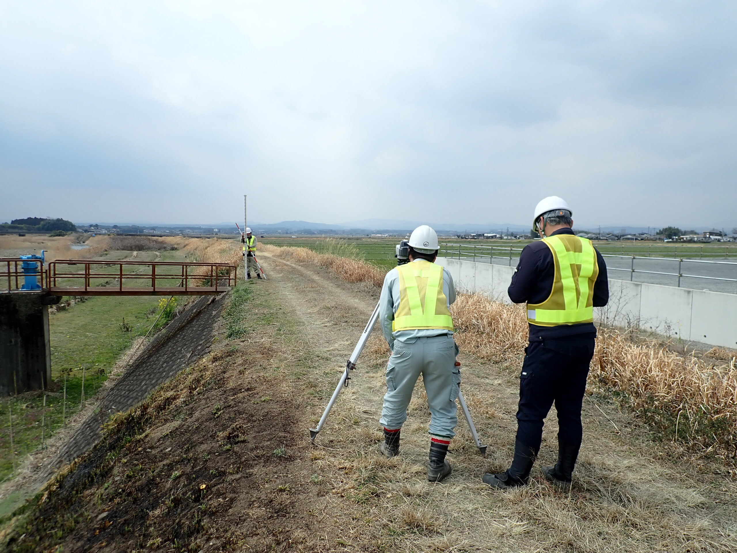 構造物などの位置や形状を測定して地形図をつくる作業をいいます。